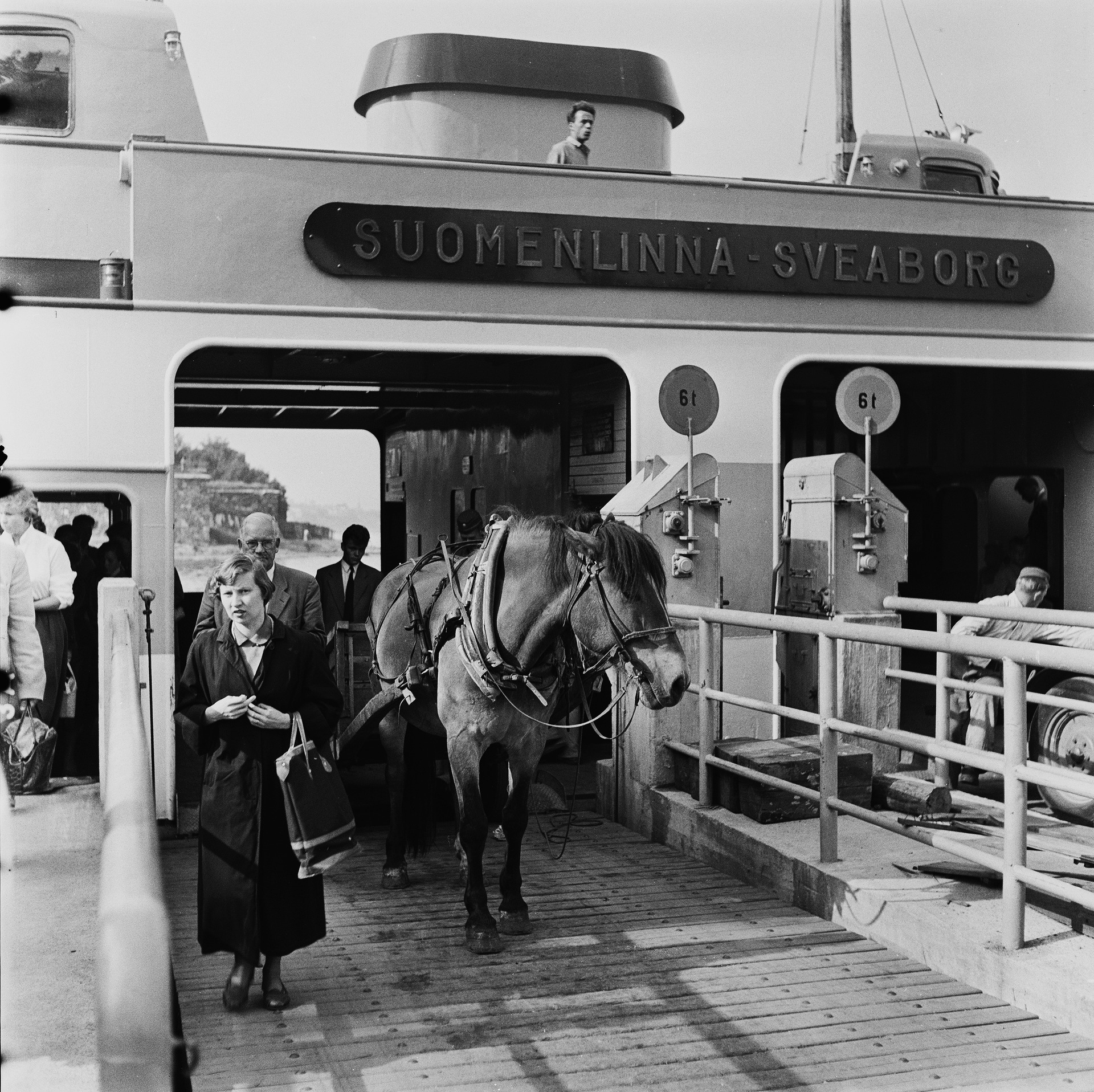 Bild: Resenärer väntar på Sveaborgsfärjan 1970. Volker von Bonin, Helsingfors stadsmuseum (Public Domain).